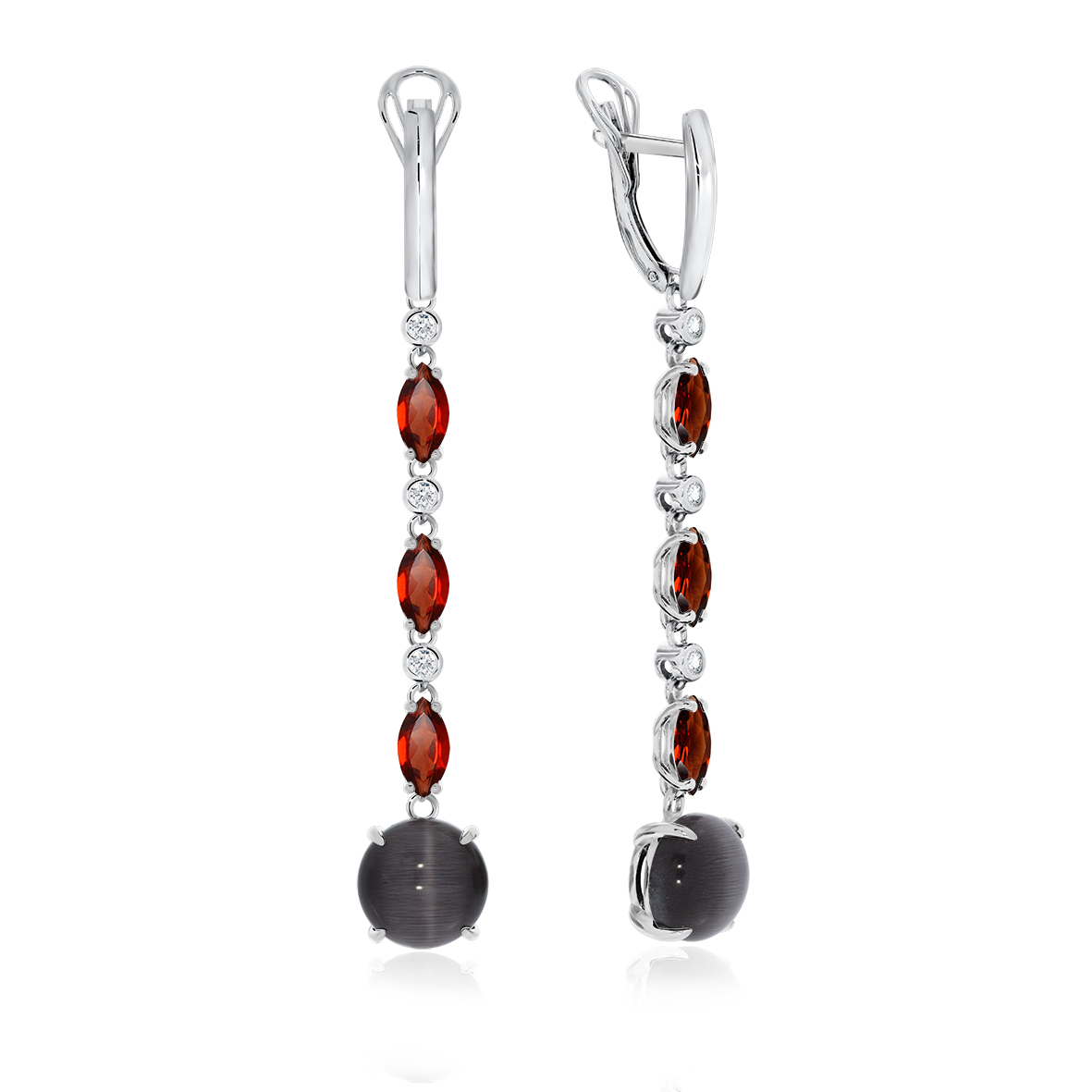 Серьги для женщин из серебра 925 пробы с кошачий глазами,гранатами,,фианитами из коллекции Shine артикул 2340261204-1-21 от компании KRASNOE