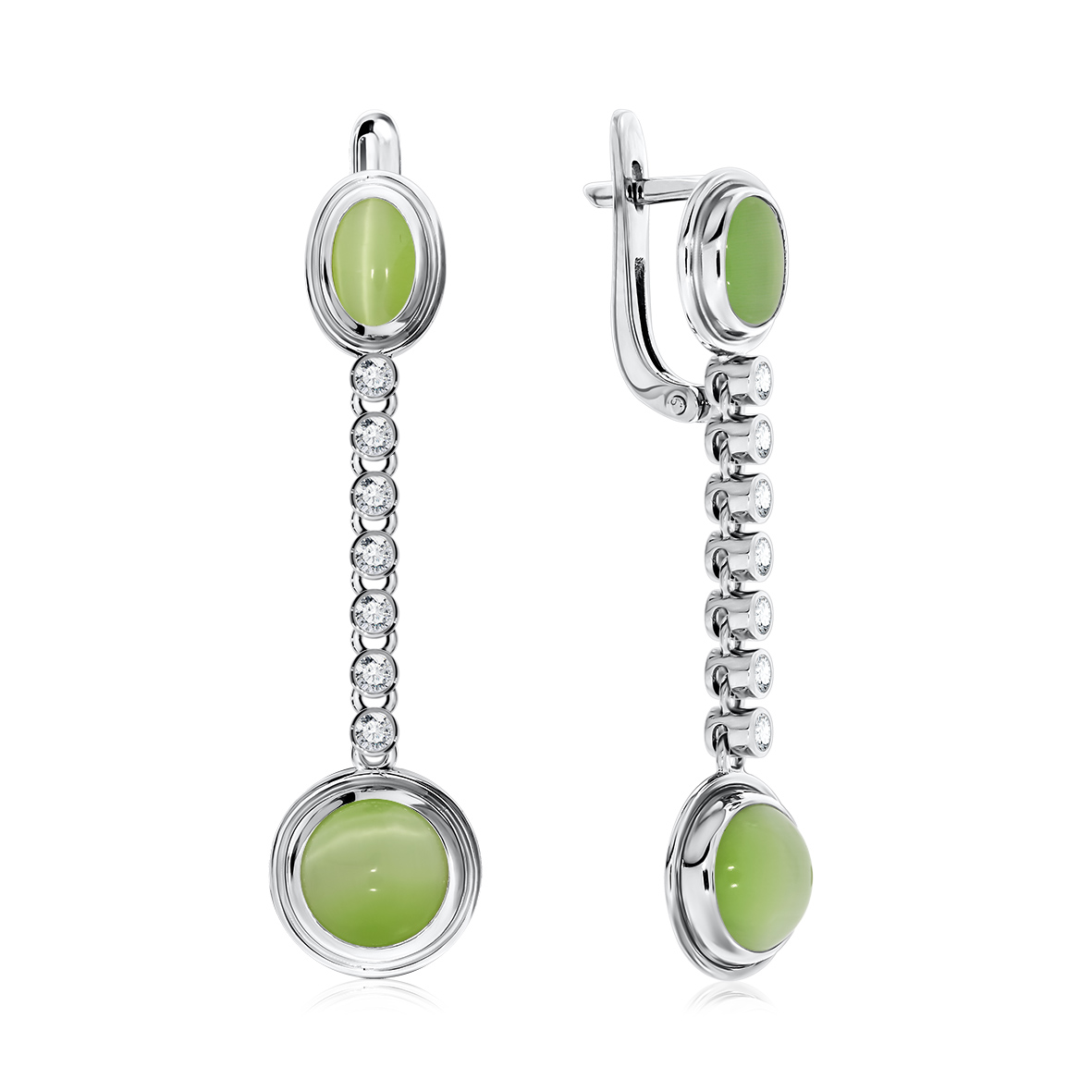 Серьги для женщин из серебра 925 пробы с кошачий глазами,фианитами из коллекции Уральские самоцветы артикул 2340260378л-65 от компании KRASNOE
