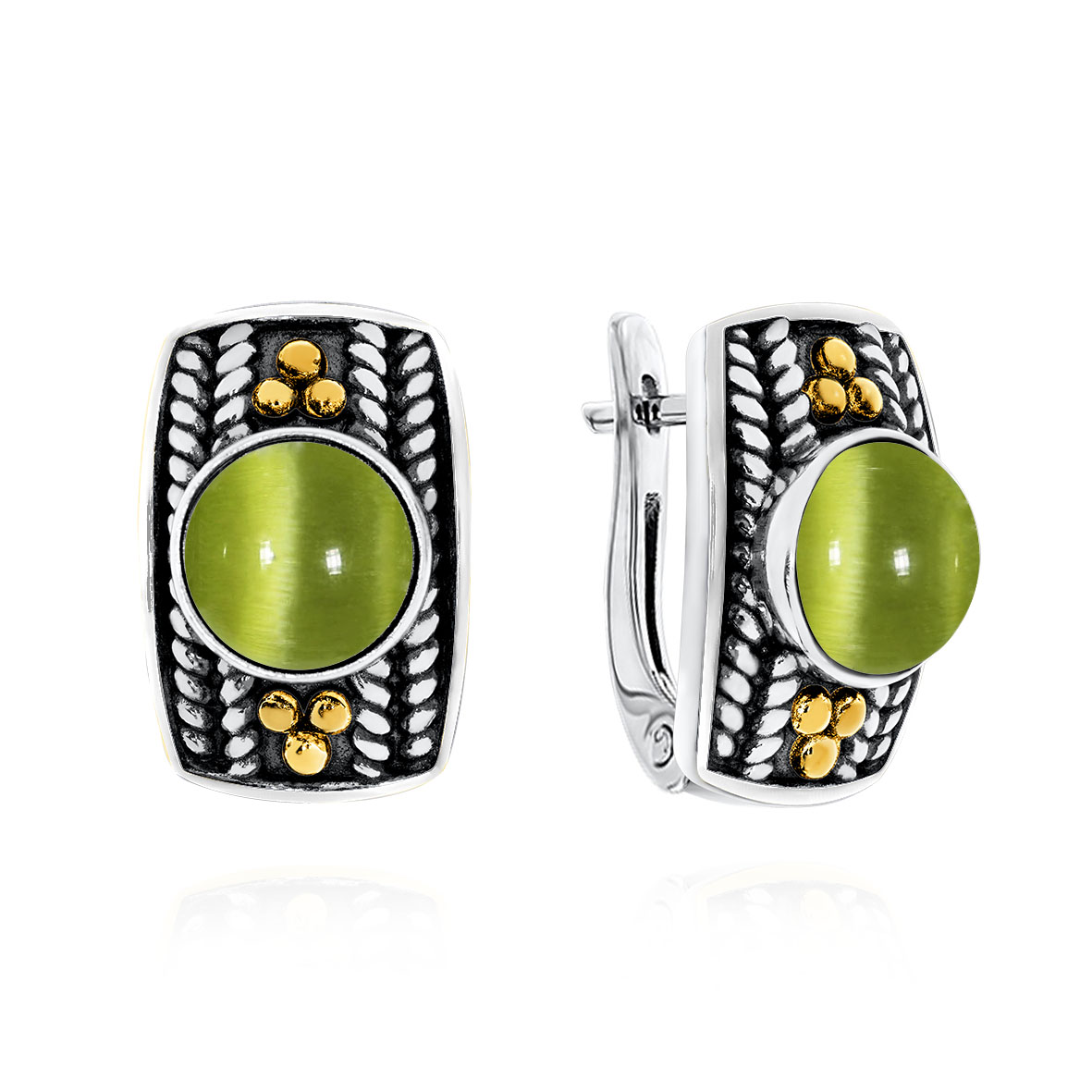Серьги для женщин из серебра 925 пробы с кошачий глазами из коллекции Игра фактур артикул 2317261750-57 от компании KRASNOE