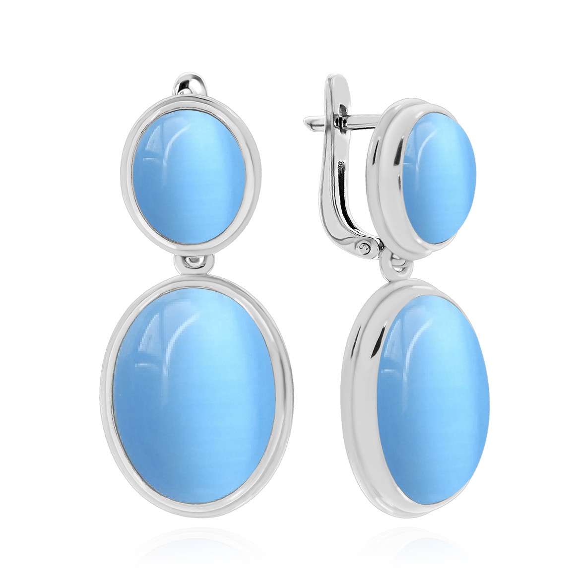 Серьги для женщин из серебра 925 пробы с имитацией кошачьего глаза,кошачий глазами из коллекции Уральские самоцветы артикул 2340261880-70 от компании KRASNOE