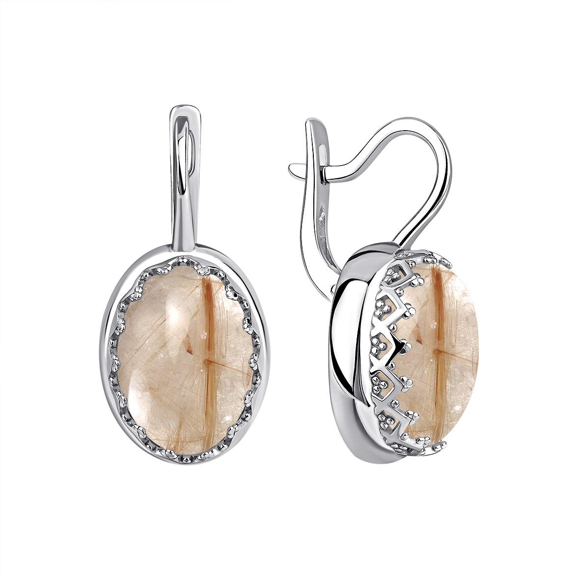 Серьги для женщин из серебра 925 пробы с кварц волосатиками из коллекции Уральские самоцветы артикул 2340991963-50 от компании KRASNOE