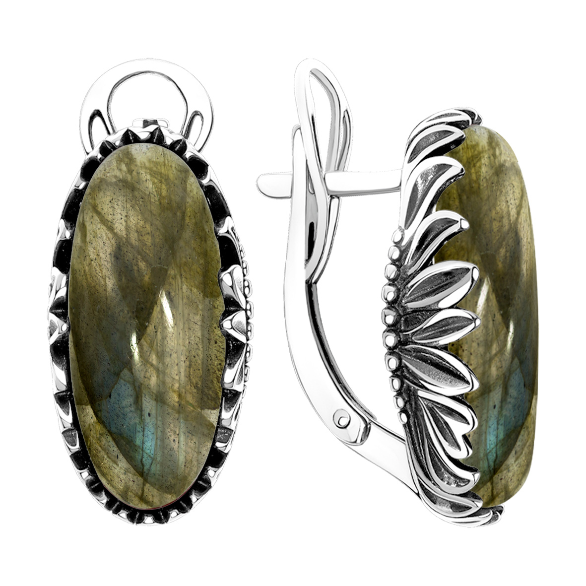 Серьги для женщин из серебра 925 пробы с лабрадоритами из коллекции Flowers (рабочее название) артикул 2310Л05726 от компании KRASNOE
