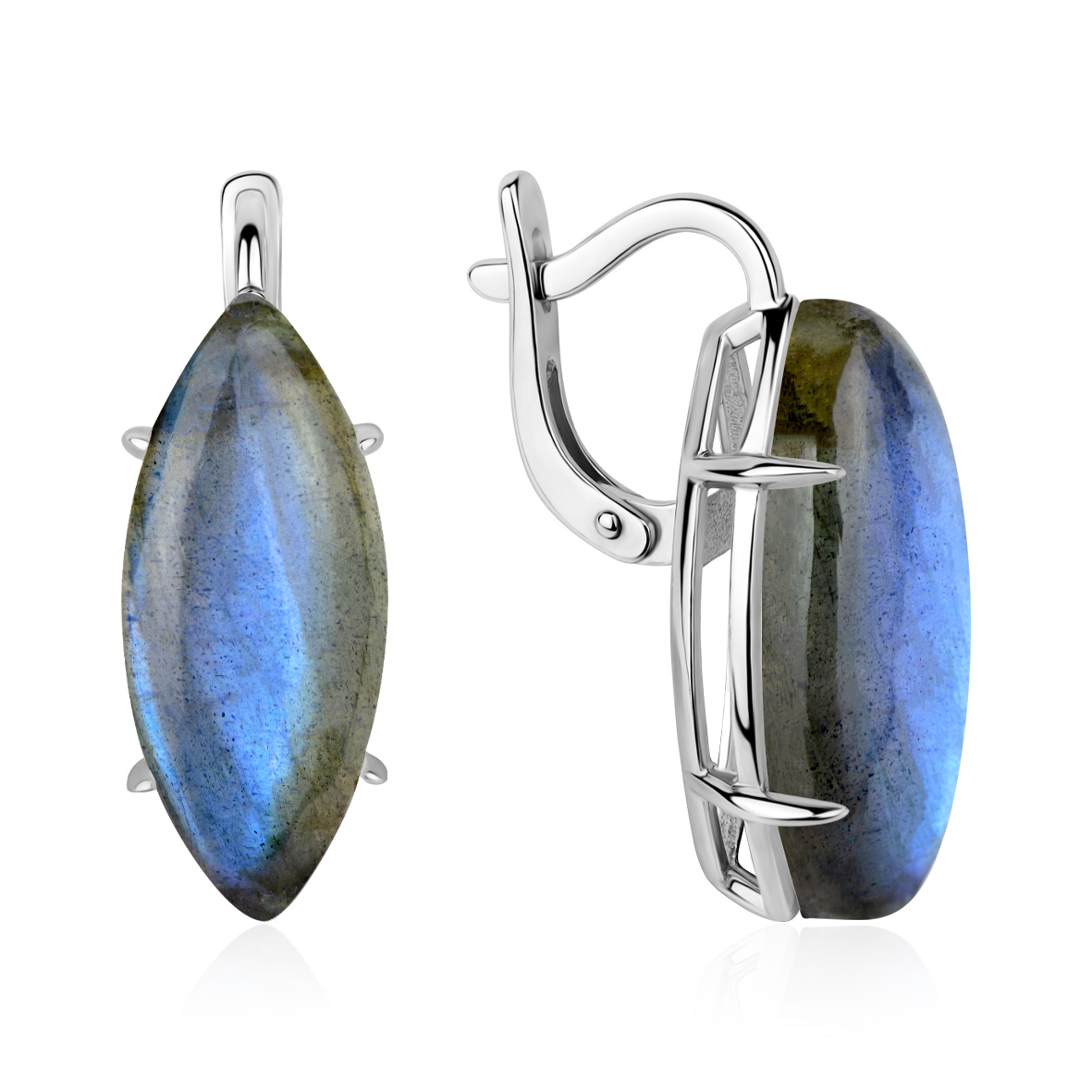 Серьги для женщин из серебра 925 пробы с лабрадоритами из коллекции Уральские самоцветы артикул 2340Л06353 от компании KRASNOE