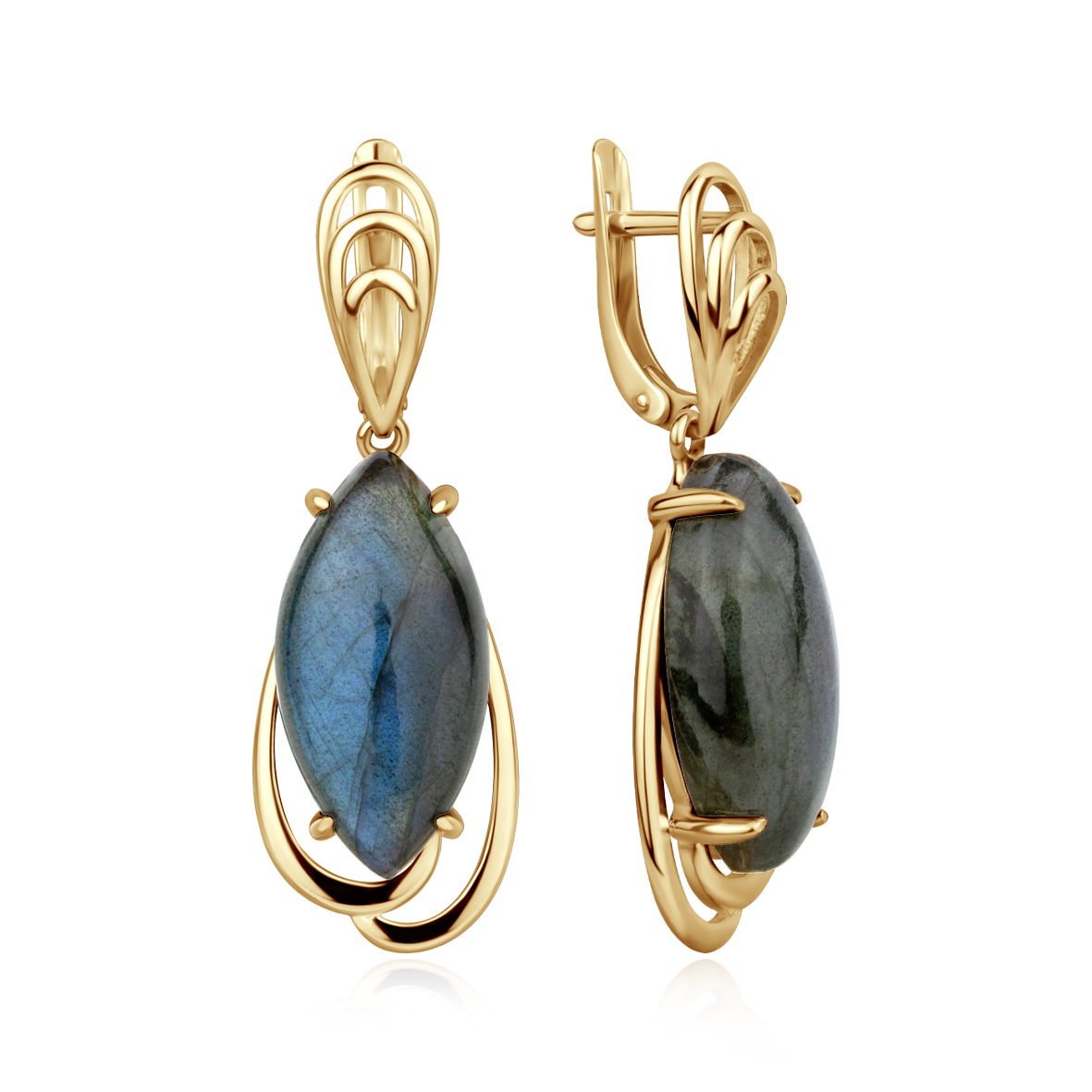 Серьги для женщин из серебра 925 пробы с лабрадоритами из коллекции Уральские самоцветы артикул 2320Л06415 от компании KRASNOE