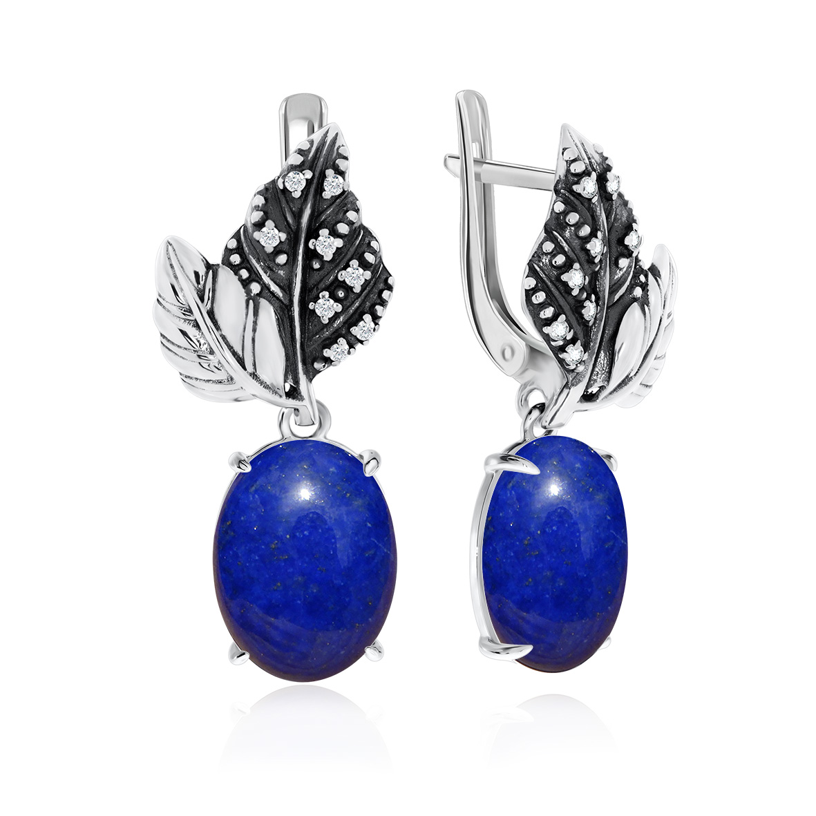 Серьги для женщин из серебра 925 пробы с лазуритами,фианитами из коллекции Уральские самоцветы артикул 2310472267 от компании KRASNOE