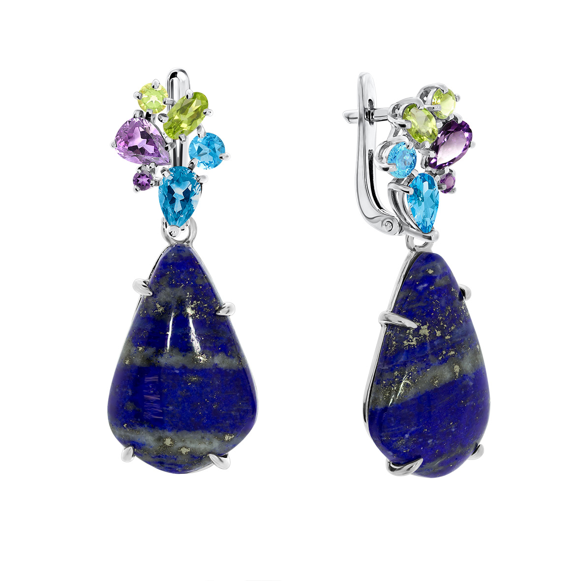 Серьги для женщин из серебра 925 пробы с лазуритами,ситаллами,,фианитами из коллекции Уральские самоцветы артикул 2340474388-80 от компании KRASNOE