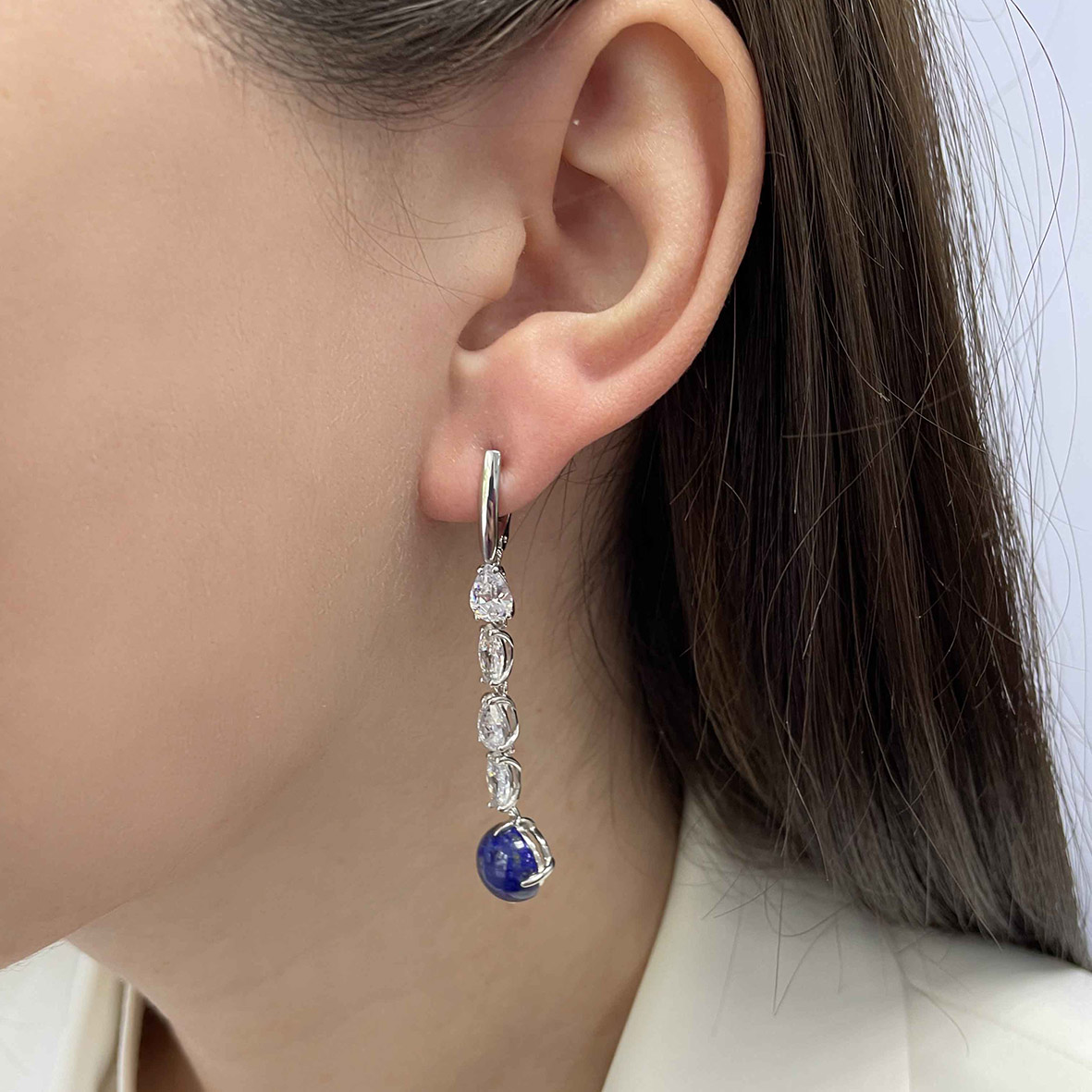 Серьги для женщин из серебра 925 пробы с лазуритами,фианитами из коллекции Shine артикул 2340471205-1 от компании KRASNOE