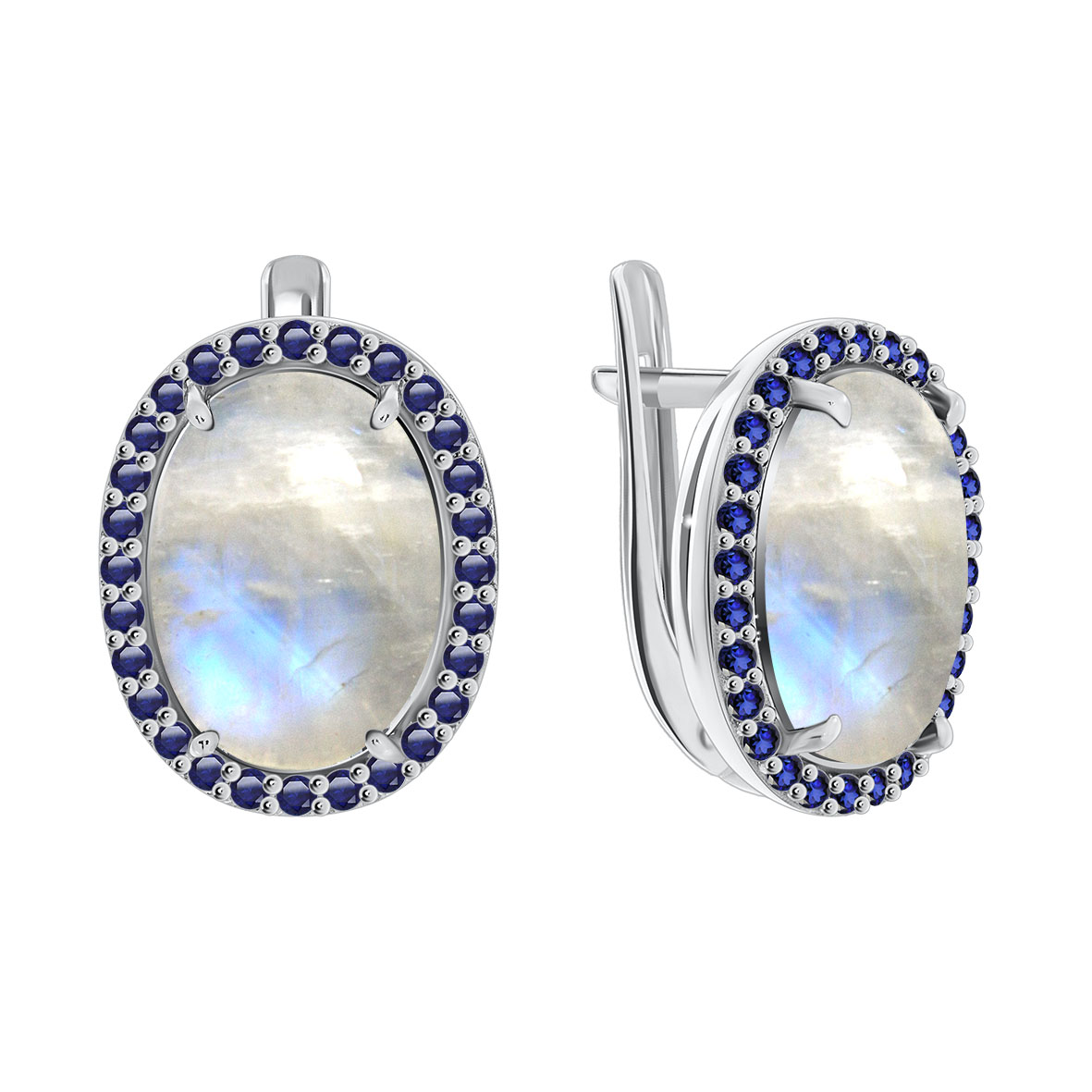 Серьги для женщин из серебра 925 пробы с лунными камнями,ситаллами из коллекции Ирида артикул 2340930253л-80 от компании KRASNOE