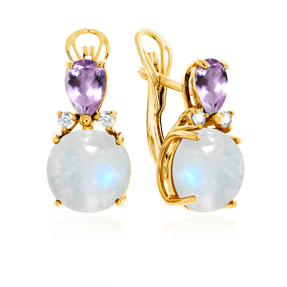 Серьги для женщин из серебра 925 пробы с лунным камнем,фианитами из коллекции Уральские самоцветы артикул 2340930935-84 от компании KRASNOE