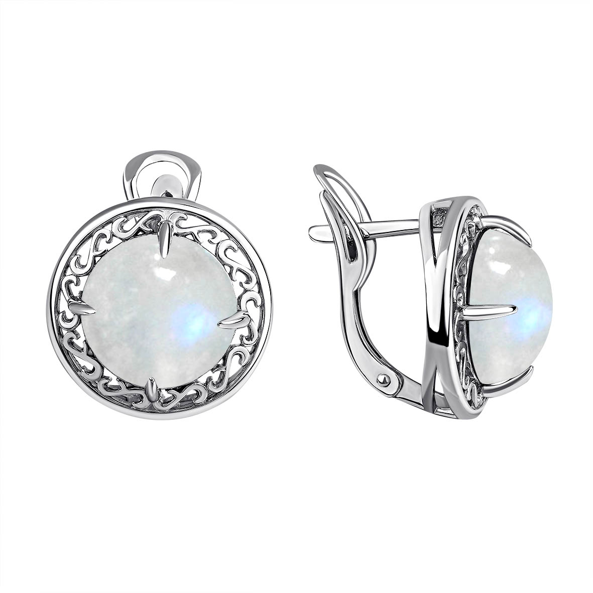 Серьги для женщин из серебра 925 пробы с лунным камнем из коллекции Уральские самоцветы артикул 2340931942 от компании KRASNOE