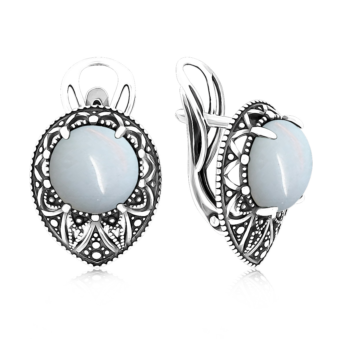 Серьги для женщин из серебра 925 пробы с лунным камнем из коллекции Филигранная (рабочее название) артикул 2310931868 от компании KRASNOE