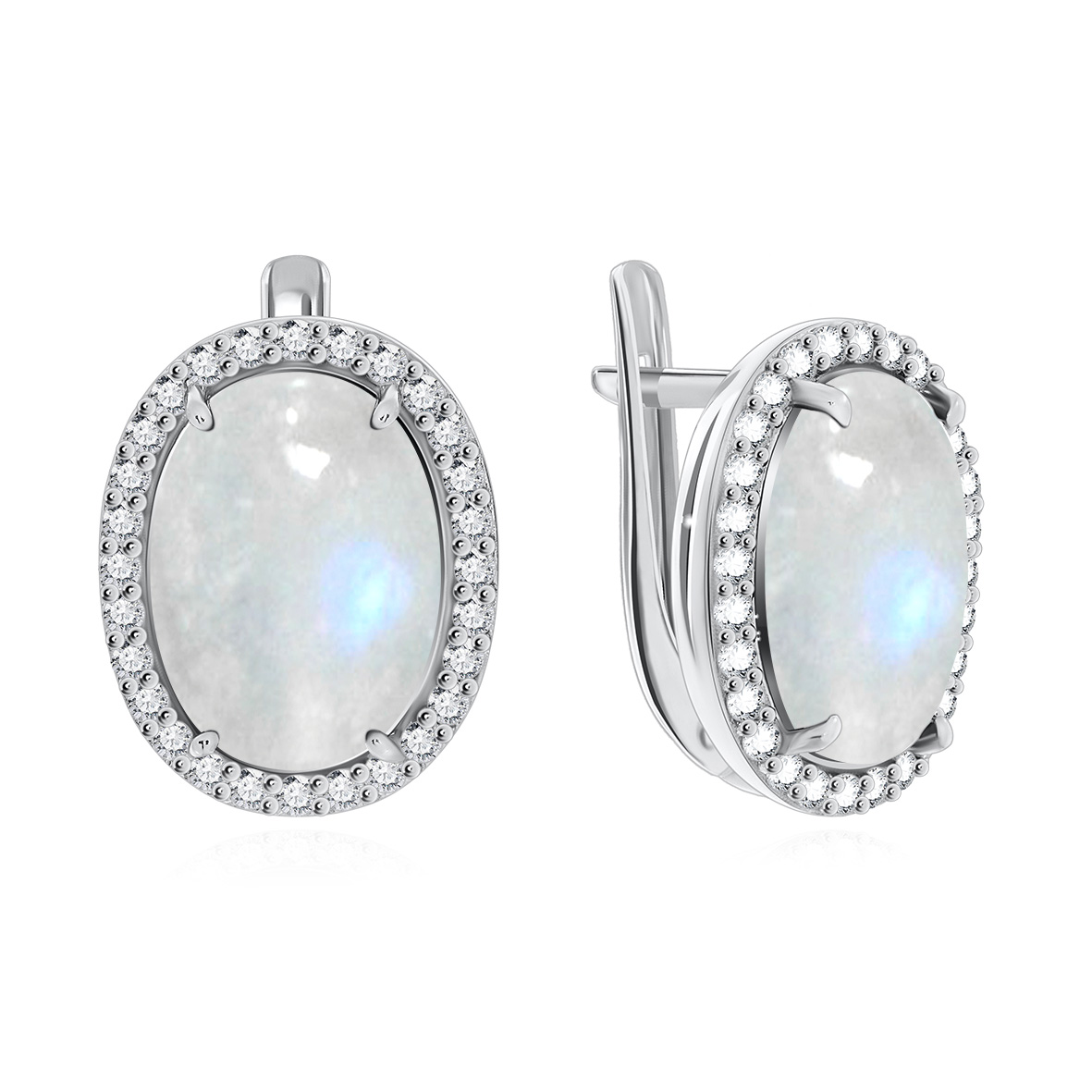 Серьги для женщин из серебра 925 пробы с лунными камнями,фианитами из коллекции Ирида артикул 2340930253 от компании KRASNOE