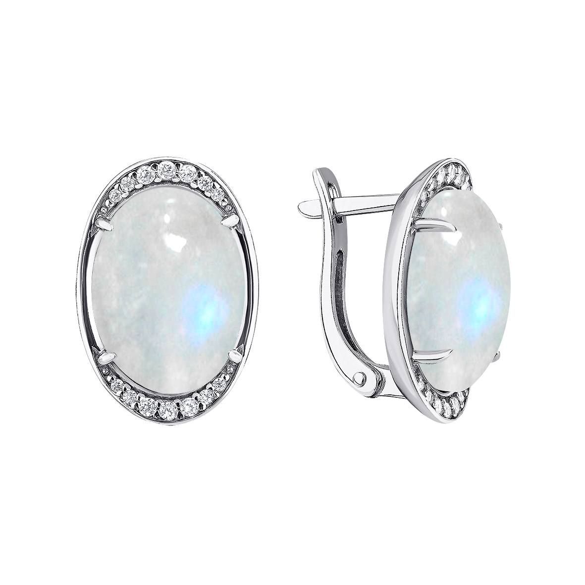 Серьги для женщин из серебра 925 пробы с лунным камнем,фианитами из коллекции Уральские самоцветы артикул 2340931968л от компании KRASNOE