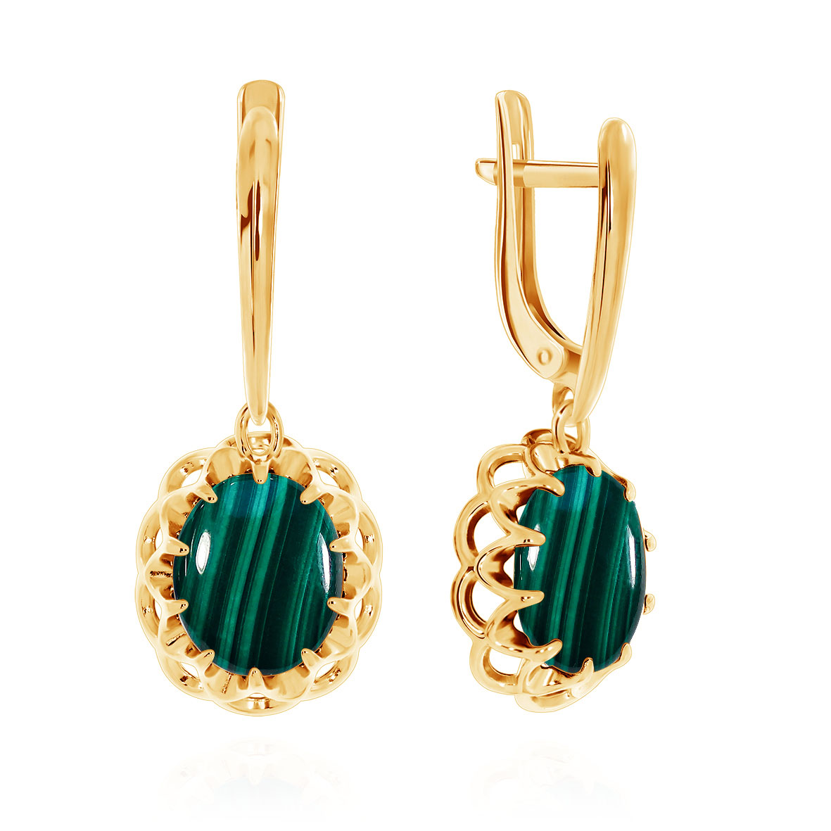 Серьги для женщин из серебра 925 пробы с малахитами из коллекции Уральские самоцветы артикул 2320381541-1 от компании KRASNOE