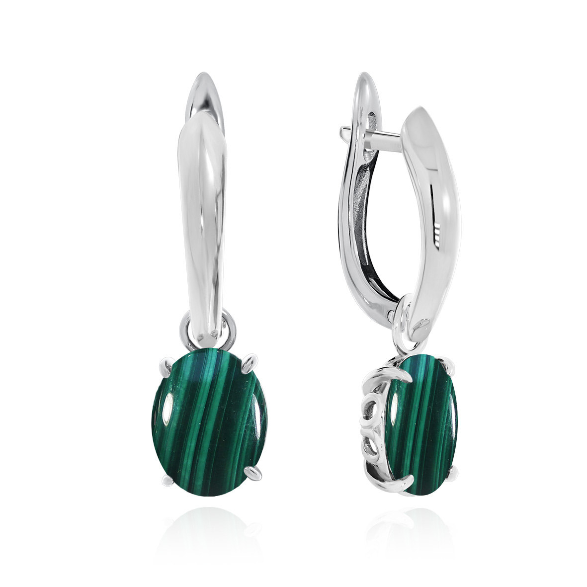 Серьги для женщин из серебра 925 пробы с малахитами из коллекции Уральские самоцветы артикул 2340380901 от компании KRASNOE