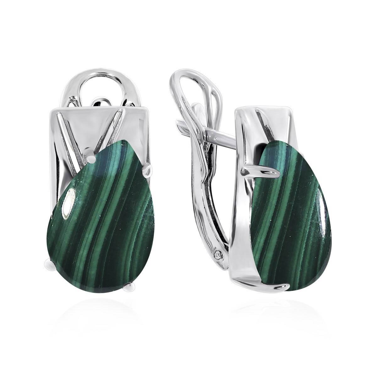 Серьги для женщин из серебра 925 пробы с малахитами из коллекции Неоклассика артикул 2340382367 от компании KRASNOE