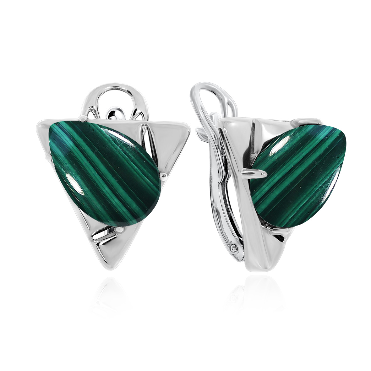 Серьги для женщин из серебра 925 пробы с малахитами из коллекции Неоклассика артикул 2340382366 от компании KRASNOE