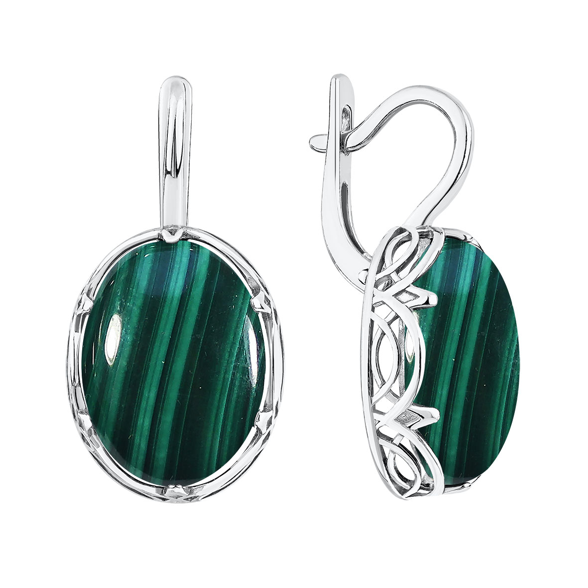 Серьги для женщин из серебра 925 пробы с малахитами из коллекции Уральские самоцветы артикул 2340385085 от компании KRASNOE