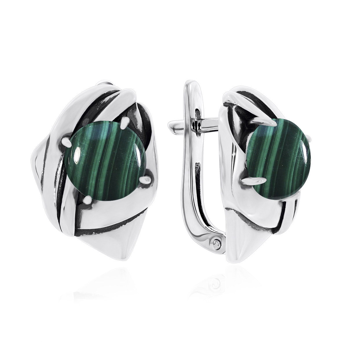 Серьги для женщин из серебра 925 пробы с малахитами из коллекции Fancy артикул 2340382363 от компании KRASNOE