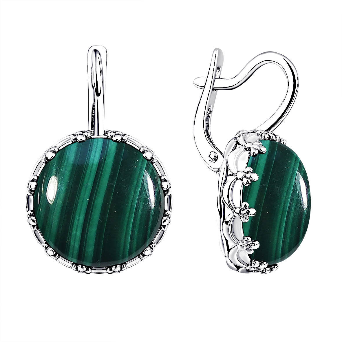 Серьги для женщин из серебра 925 пробы с малахитами из коллекции Уральские самоцветы артикул 2340381869 от компании KRASNOE