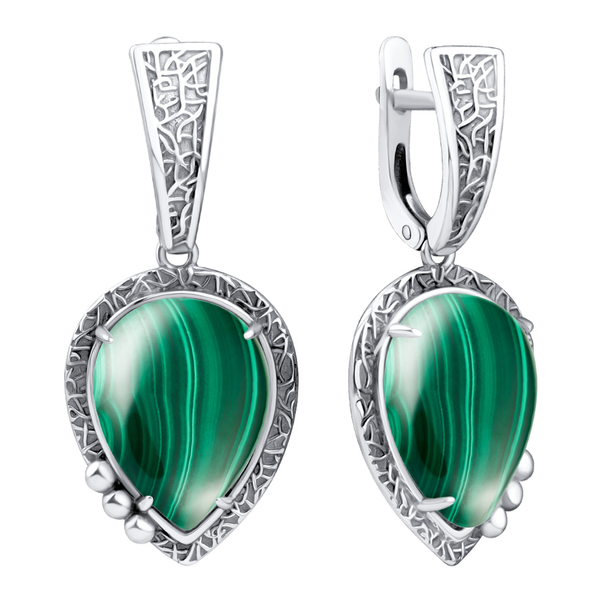 Серьги для женщин из серебра 925 пробы с малахитами из коллекции Династия артикул 2310385788 от компании KRASNOE