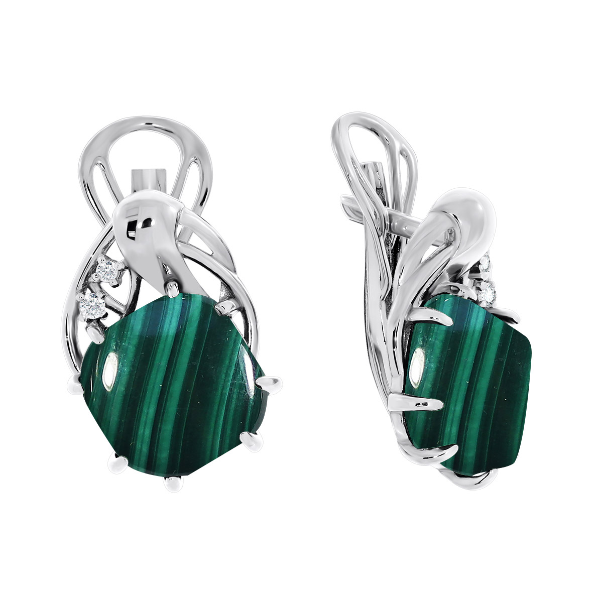Серьги для женщин из серебра 925 пробы с малахитами,фианитами из коллекции Fancy артикул 2340380984 от компании KRASNOE