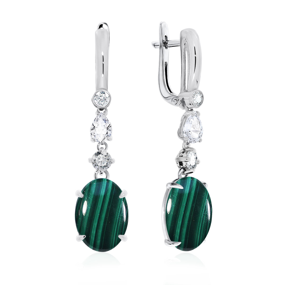 Серьги для женщин из серебра 925 пробы с малахитами,фианитами из коллекции Уральские самоцветы артикул 2340383090 от компании KRASNOE