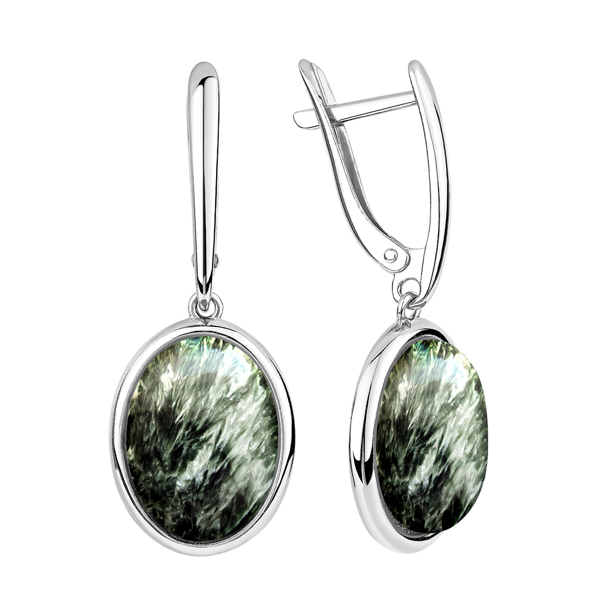 Серьги для женщин из серебра 925 пробы с серафинитами из коллекции Уральские самоцветы артикул 2340925154 от компании KRASNOE