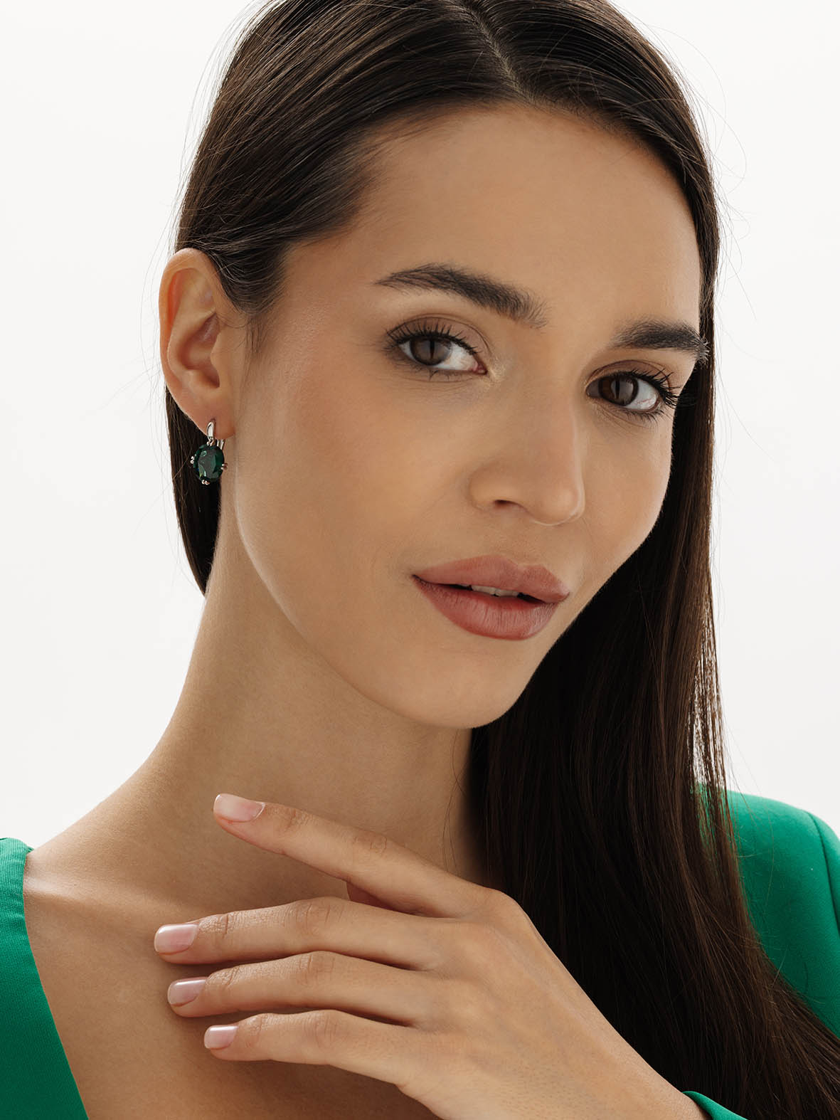 Серьги для женщин из серебра 925 пробы с ситаллами из коллекции Соло кристаллов артикул 2340881497-64 от компании KRASNOE