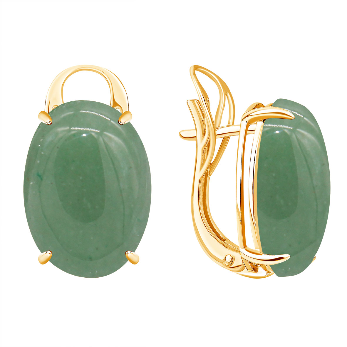 Серьги для женщин из серебра 925 пробы с нефритами из коллекции Уральские самоцветы артикул 2320355045 от компании KRASNOE