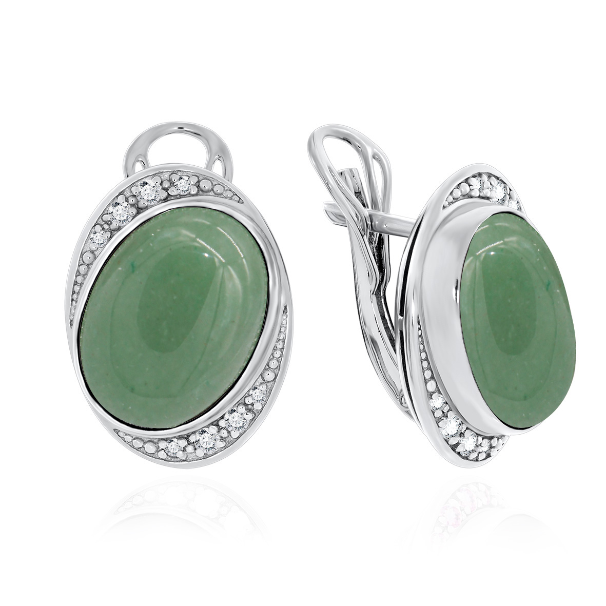Серьги для женщин из серебра 925 пробы с нефритами,фианитами из коллекции Династия артикул 2340350992 от компании KRASNOE