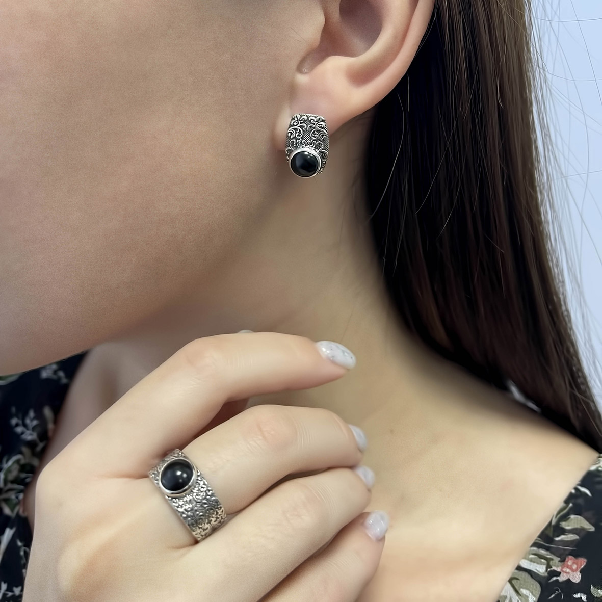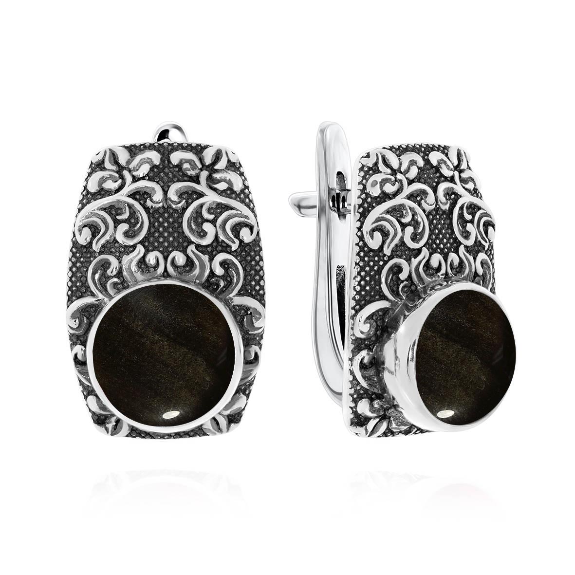 Серьги для женщин из серебра 925 пробы с обсидианами из коллекции Boyarynia артикул 2310321366-20 от компании KRASNOE
