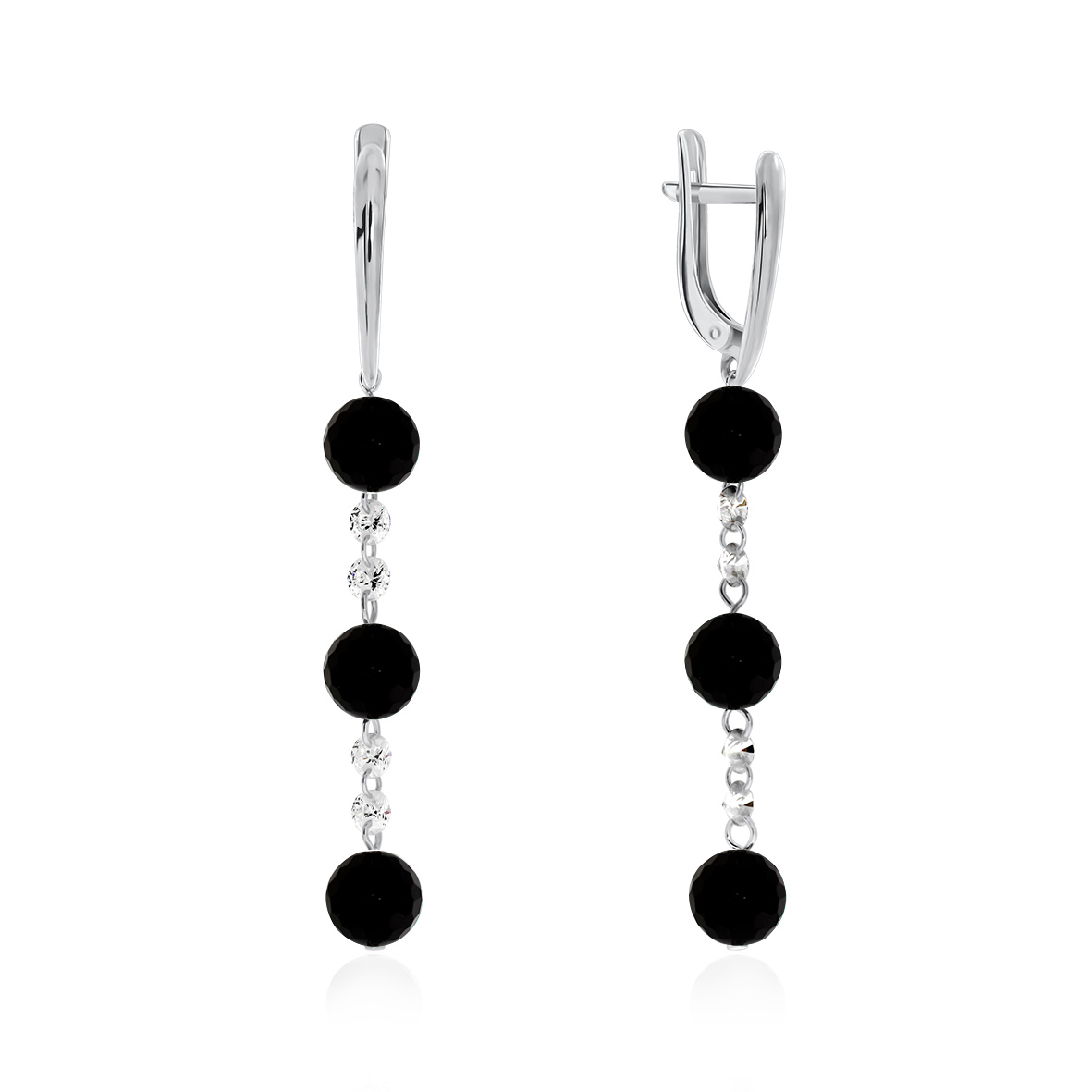 Серьги для женщин из серебра 925 пробы с ониксами,фианитами из коллекции Невесомость артикул 2340430623 от компании KRASNOE