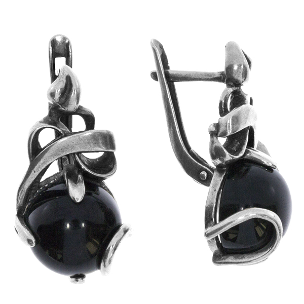 Серьги для женщин из серебра 925 пробы с ониксом артикул 3431011887 от компании Алмаз-Холдинг