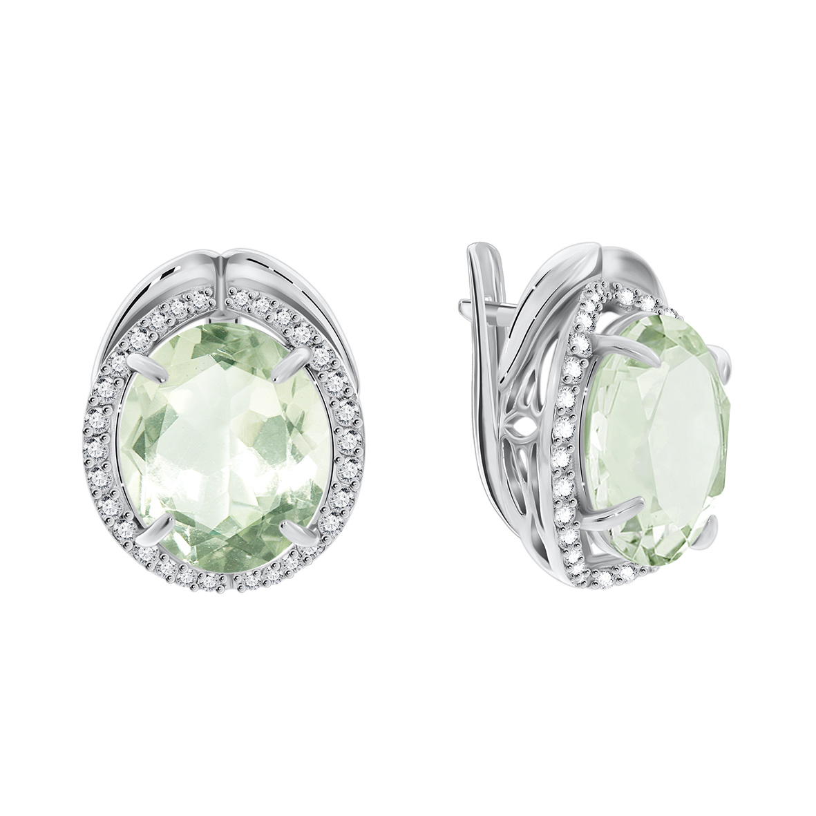 Серьги для женщин из серебра 925 пробы с празиолитами,фианитами из коллекции Ирида артикул 2340910140 от компании KRASNOE