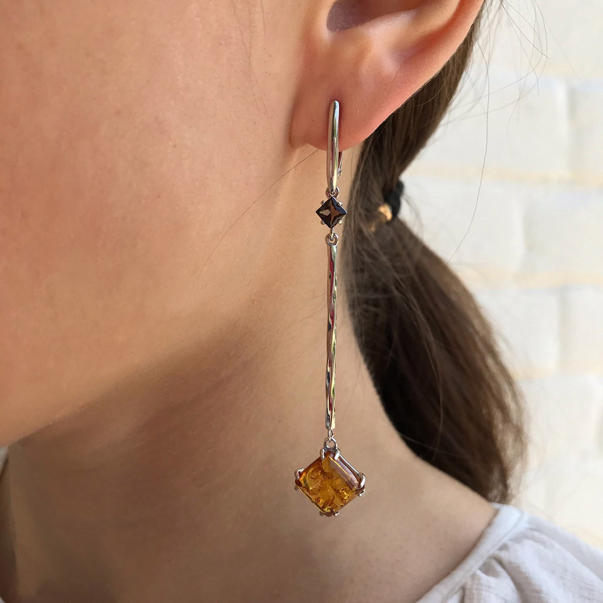 Серьги для женщин из серебра 925 пробы с топазами,янтарём из коллекции Magic stick артикул 2340481147-42 от компании KRASNOE
