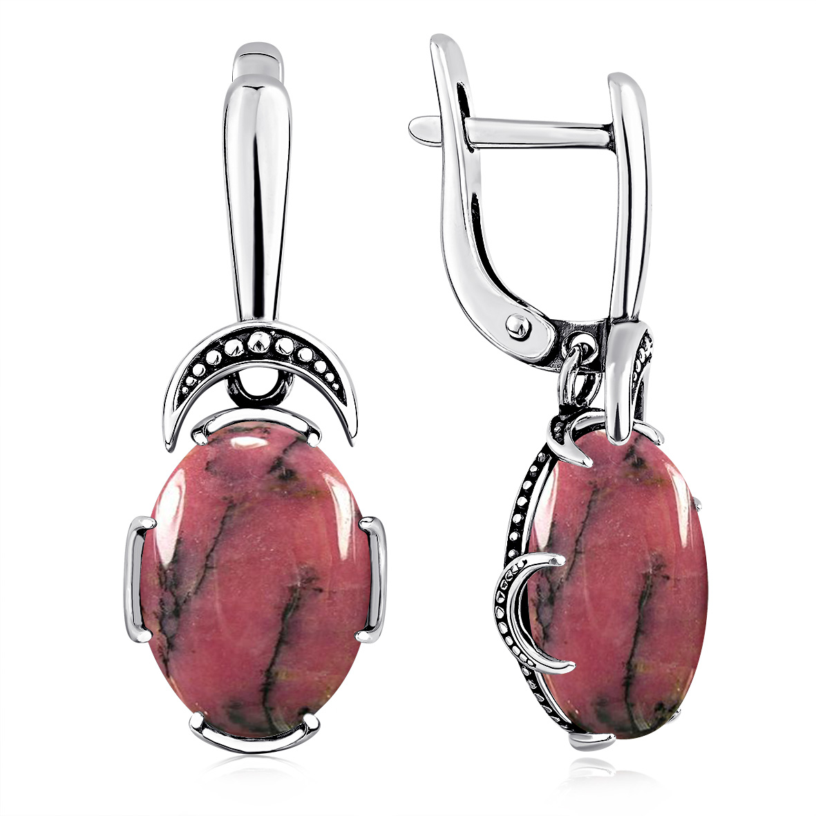Серьги для женщин из серебра 925 пробы с родонитами из коллекции Лунница артикул 2310455082 от компании KRASNOE