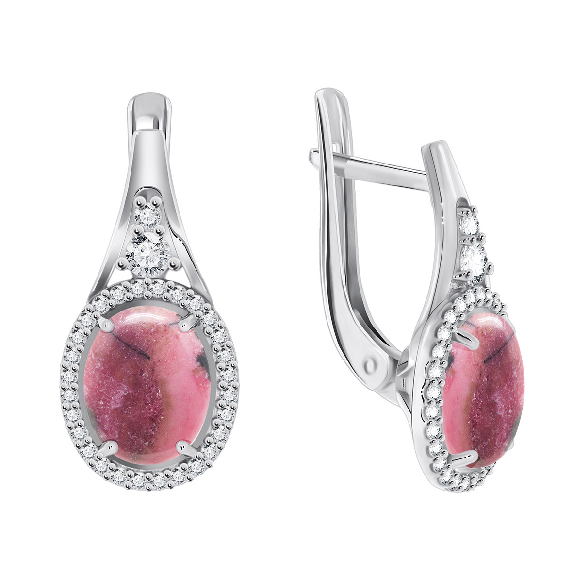 Серьги для женщин из серебра 925 пробы с родонитами,фианитами из коллекции Ирида артикул 2340450182л от компании KRASNOE