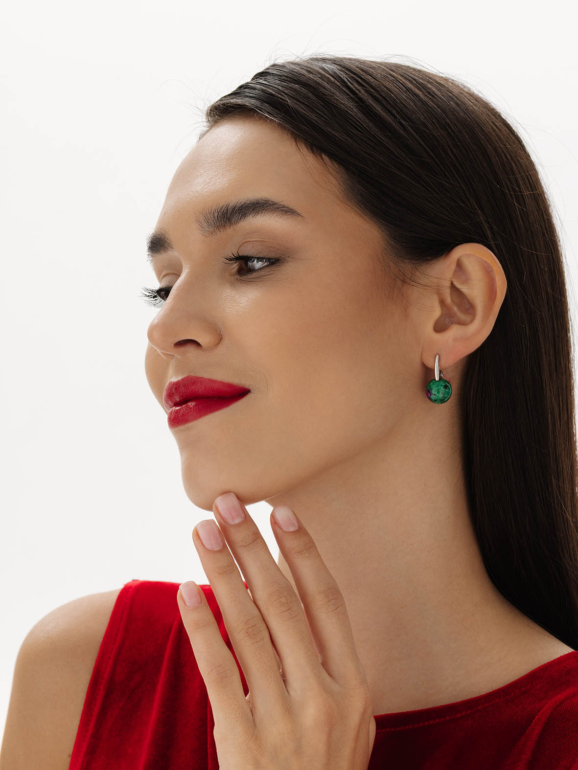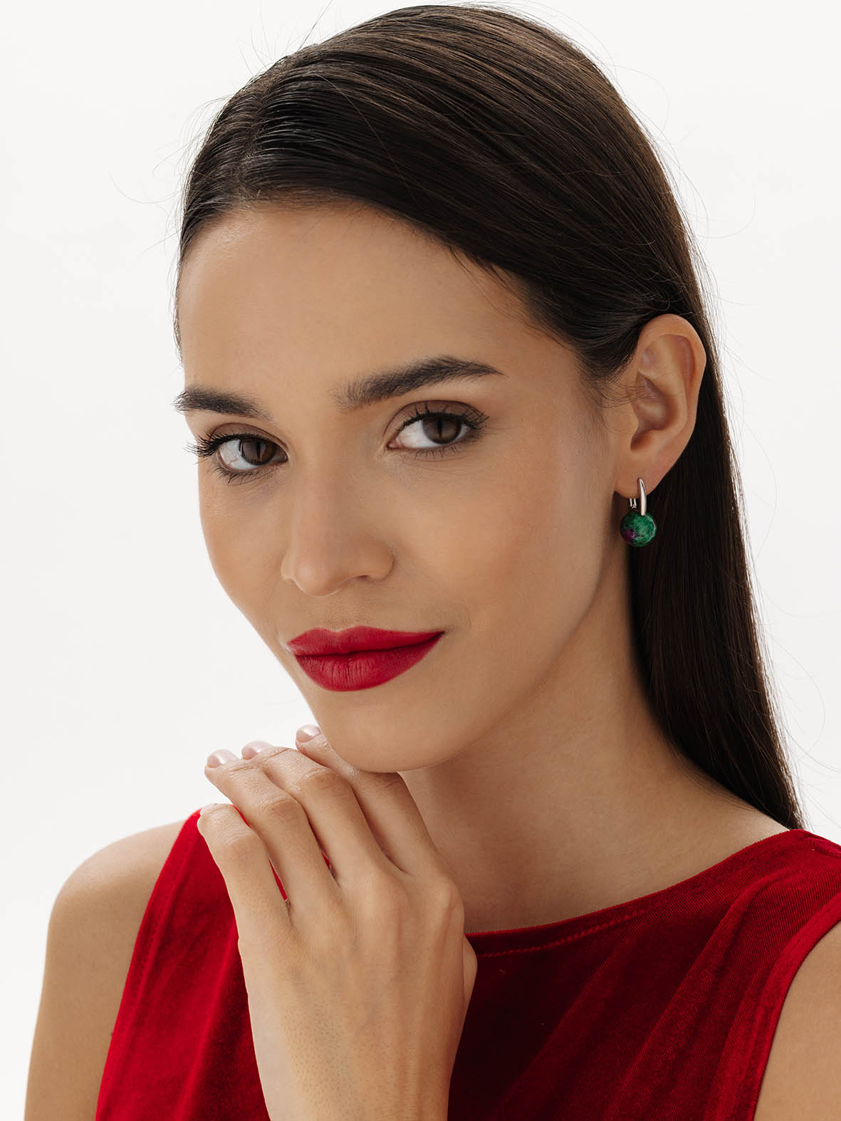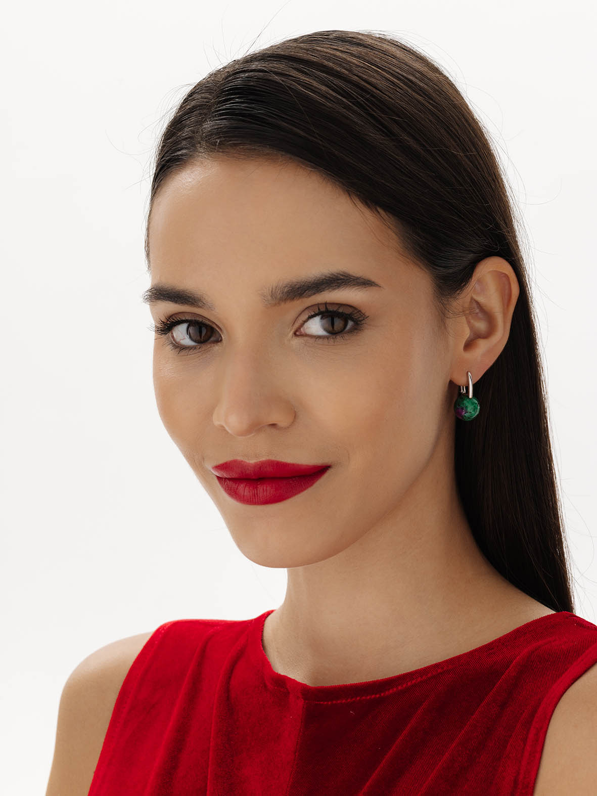 Серьги для женщин из серебра 925 пробы с рубин-цоизитами из коллекции Шанель артикул 2340594318 от компании KRASNOE