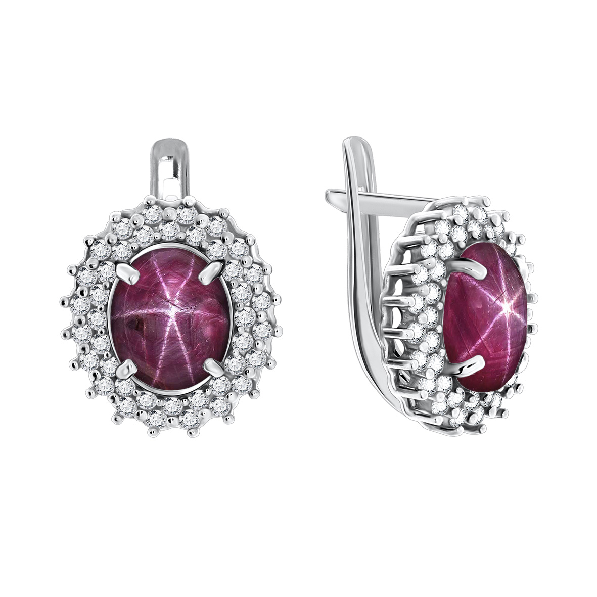 Серьги для женщин из серебра 925 пробы с рубинами звездчатыми,фианитами из коллекции Royals артикул 2340940145л-3 от компании KRASNOE
