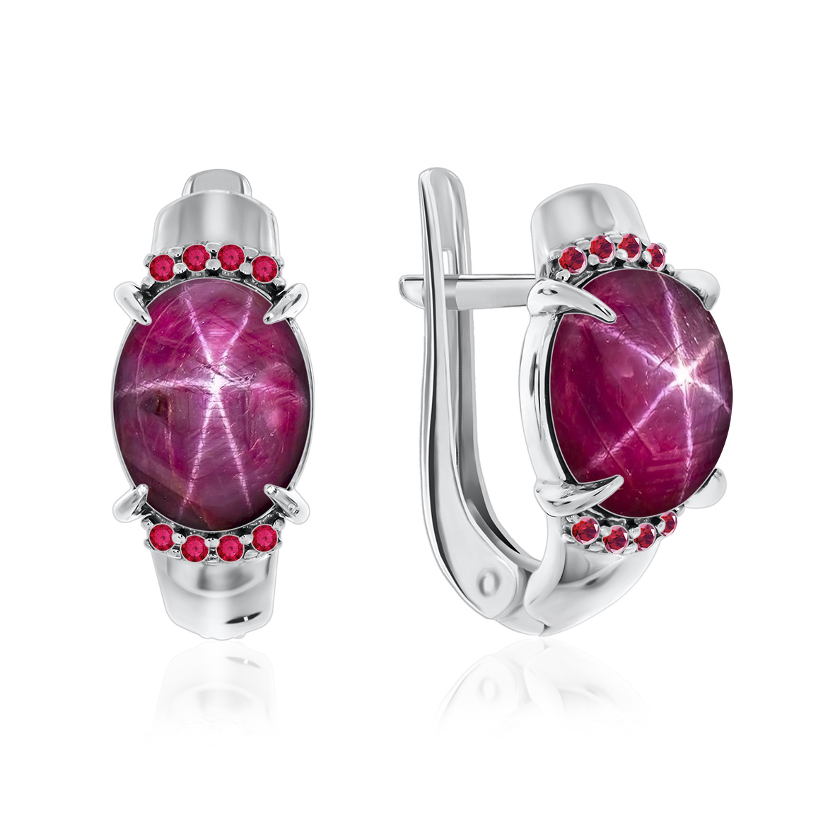 Серьги для женщин из серебра 925 пробы с рубинами звездчатыми,фианитами из коллекции Созвездие артикул 2340940371-37 от компании KRASNOE