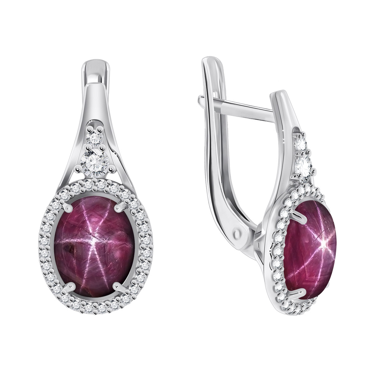 Серьги для женщин из серебра 925 пробы с звездчатыми рубинами,фианитами из коллекции Ирида артикул 2340940182л-3 от компании KRASNOE