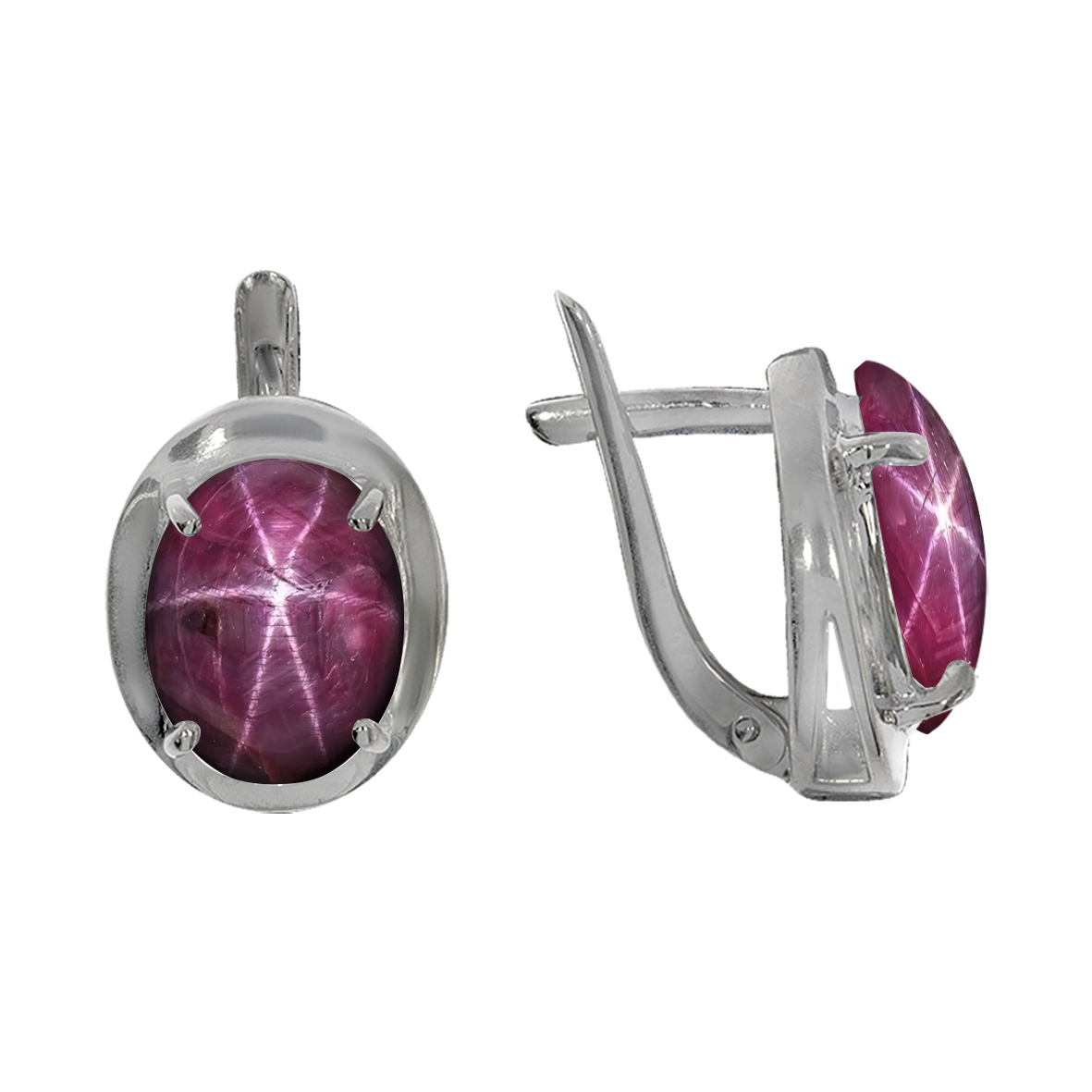 Серьги для женщин из серебра 925 пробы с рубинами звездчатыми из коллекции Ирида артикул 2340940029-3 от компании KRASNOE