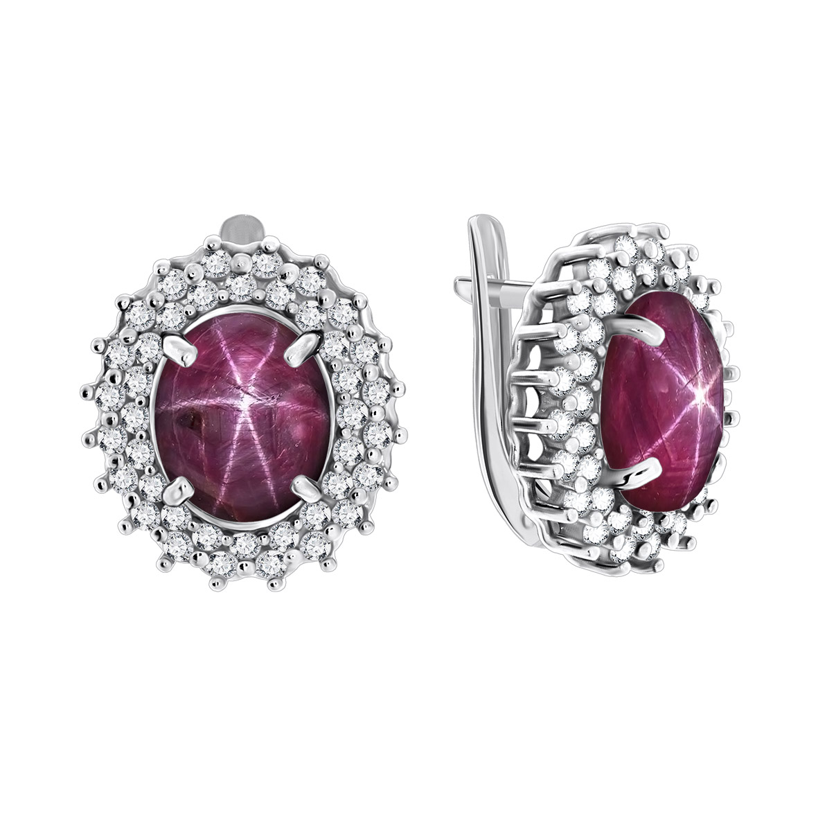 Серьги для женщин из серебра 925 пробы с звездчатыми рубинами,фианитами из коллекции Royals артикул 2340940150-3 от компании KRASNOE