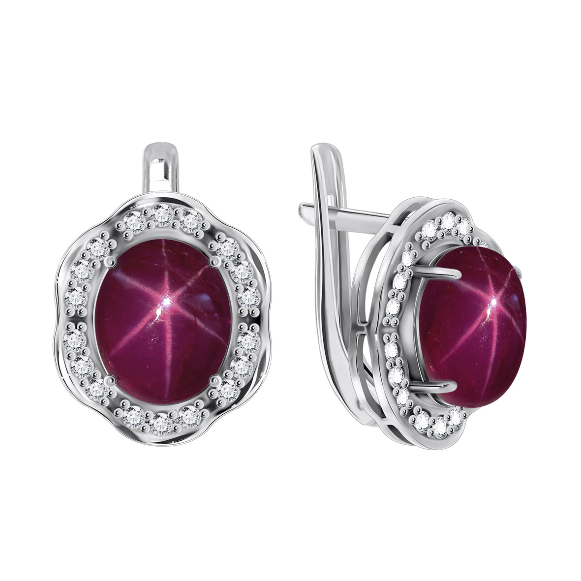 Серьги для женщин из серебра 925 пробы с звездчатыми рубинами,фианитами из коллекции Ирида артикул 2340940141-3 от компании KRASNOE