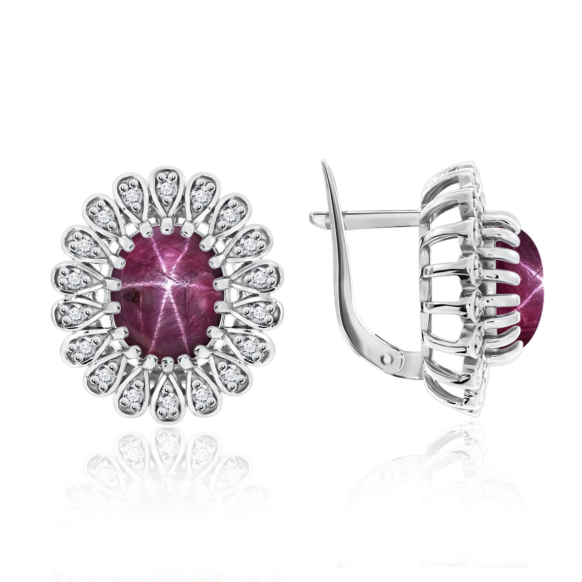 Отличный выбор - серьги из серебра 925 пробы со звездчатым рубином огранки кабошон с эффектом астеризма сияющей звезды.