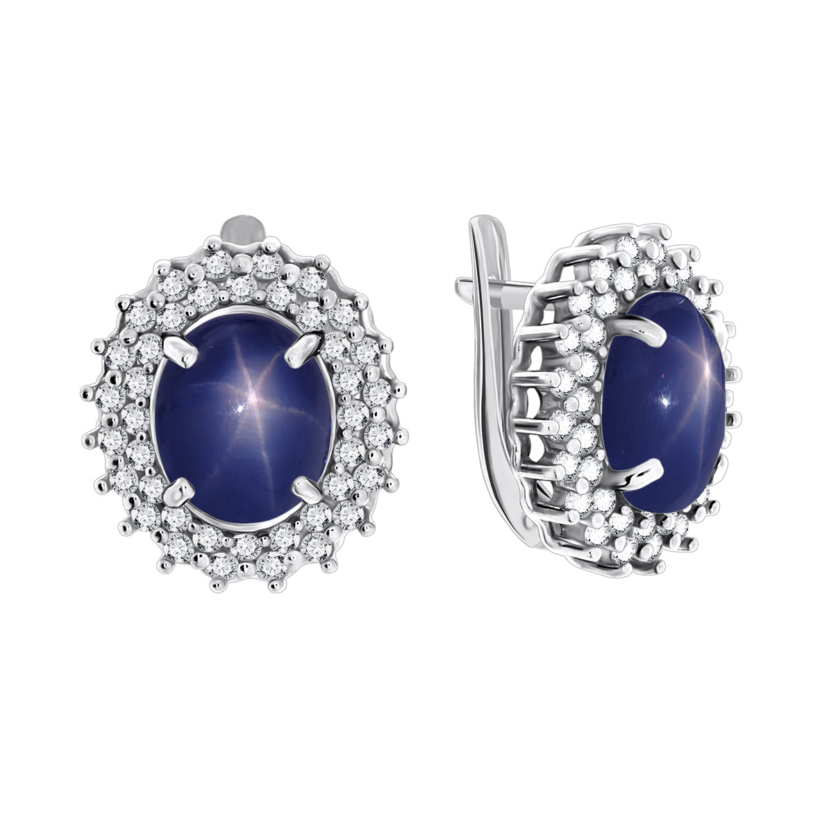Серьги для женщин из серебра 925 пробы с звездчатыми сапфирами,фианитами из коллекции Royals артикул 2340940150-8 от компании KRASNOE