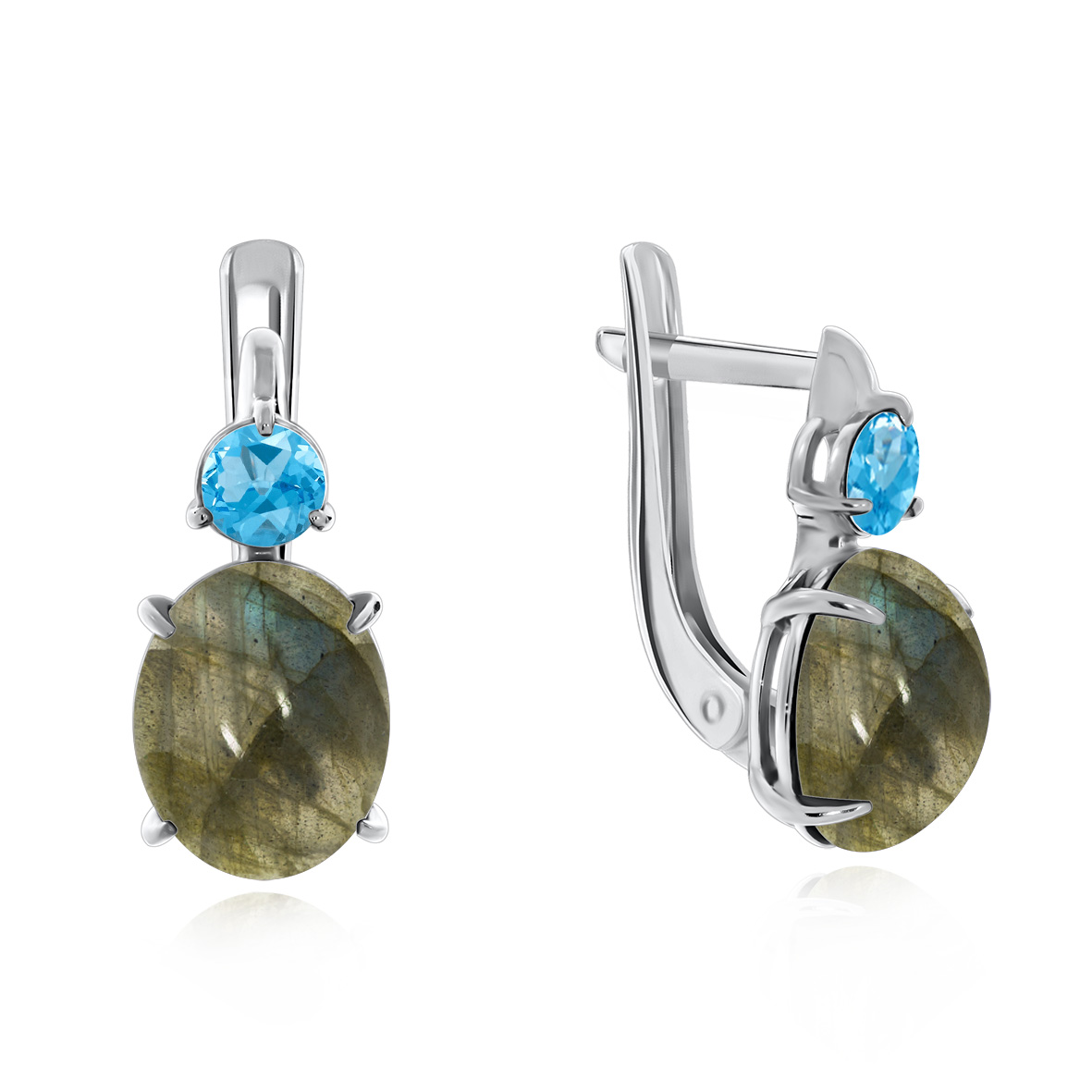 Серьги для женщин из серебра 925 пробы с бриллианитами,лабрадоритами из коллекции Уральские самоцветы артикул 2340Л20367-70 от компании KRASNOE
