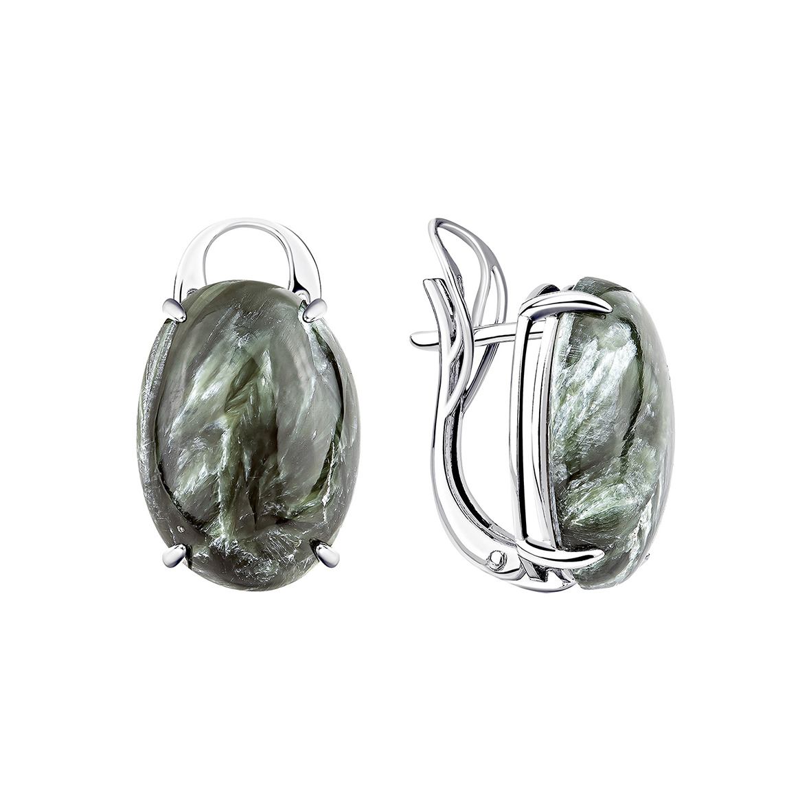 Серьги для женщин из серебра 925 пробы с серафинитами из коллекции Уральские самоцветы артикул 2340925045 от компании KRASNOE