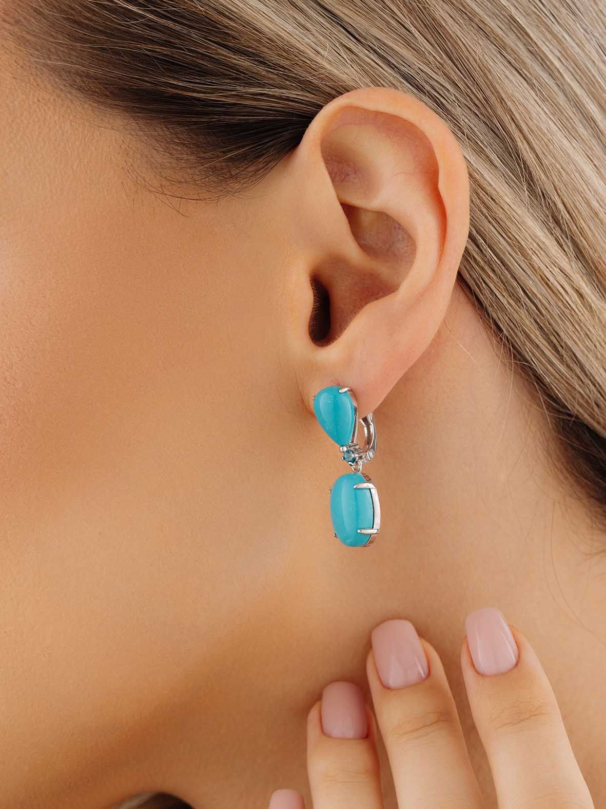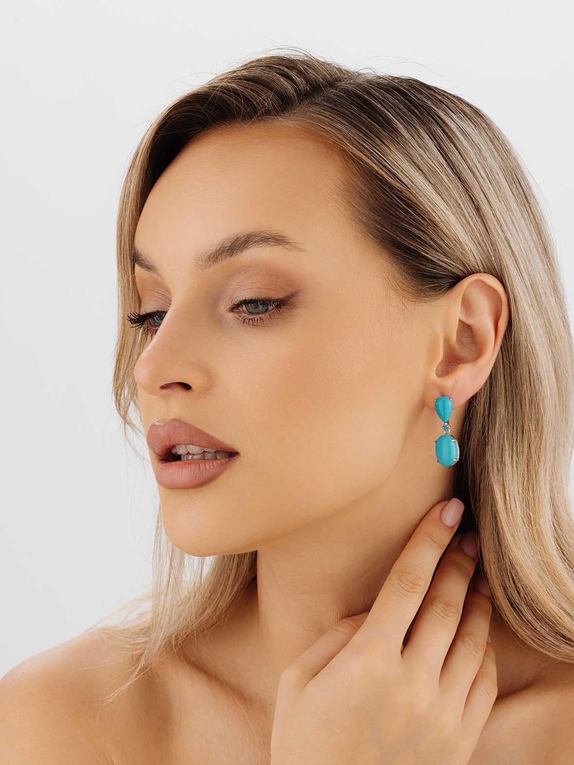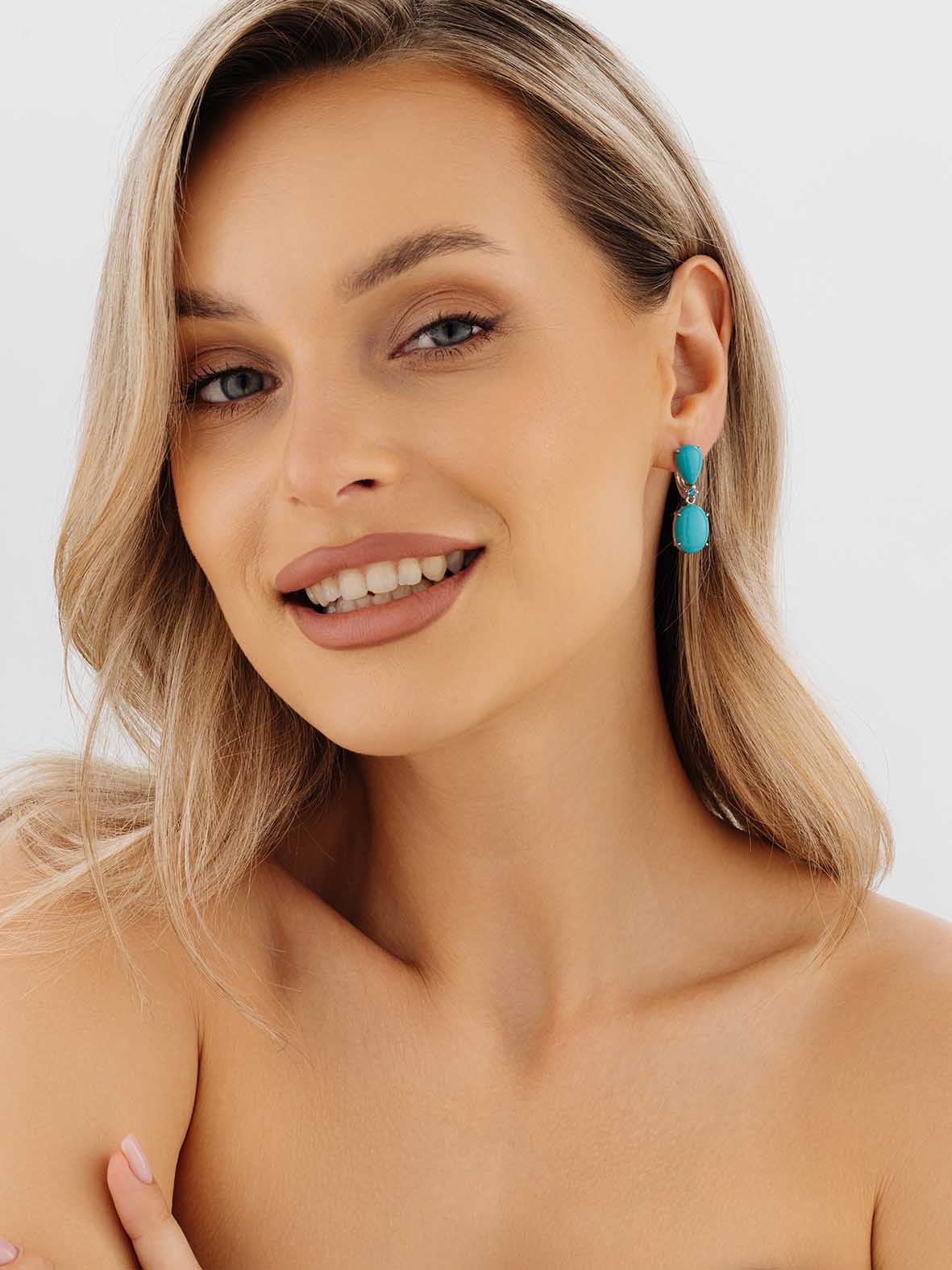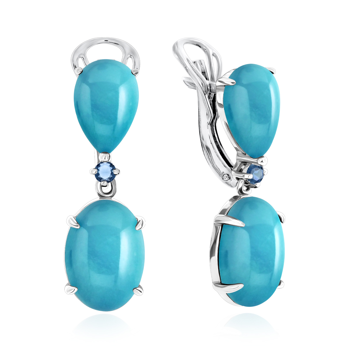 Серьги для женщин из серебра 925 пробы с ситаллами,бирюзой из коллекции Уральские самоцветы артикул 2340311434-78 от компании KRASNOE